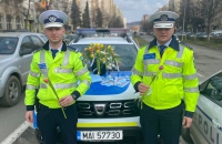 Doamnele și domnișoarele prezente în trafic, întâmpinate cu flori, de polițiștii sălăjeni.