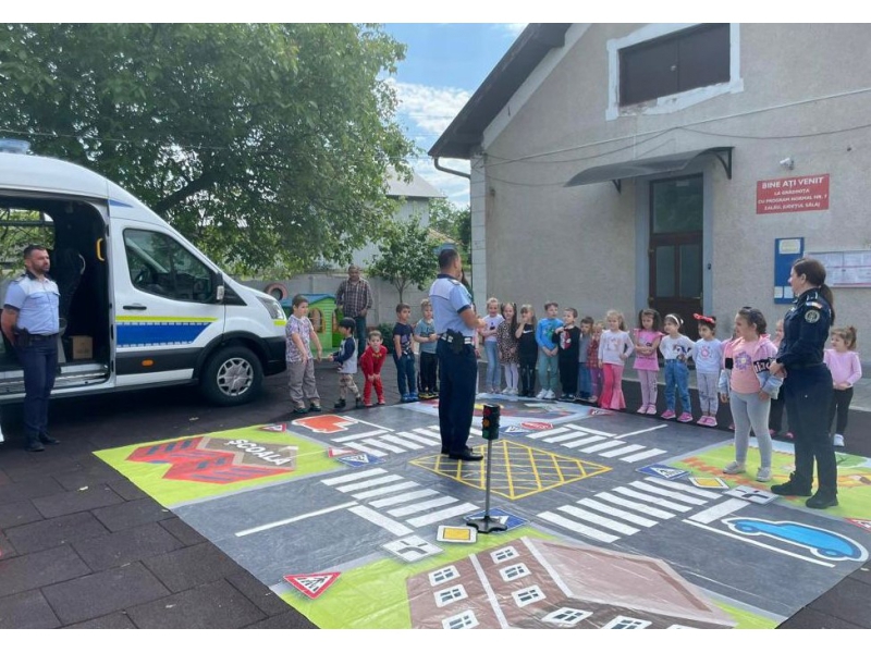 Luni, 22 mai a.c., în prima zi a evenimentului național „Săptămâna Prevenirii Criminalităţii”, polițiștii de prevenire, rutieri și de siguranță școlară sălăjeni au desfășurat activități preventive dedicate siguranței copiilor, alături de preșcolarii de la trei grădinițe din municipiul Zalău, pe teme legate de siguranța copiilor pe stradă, acasă și la locul de joacă, învățându-i pe cei mici, prin intermediul jocurilor și cu sprijinul covorului rutier și al mini indicatoarelor rutiere, principalele reguli de circulație și cum să circule corect pe drumurile publice, pentru a preveni victimizarea prin accidente rutiere.
