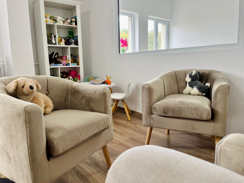 Camera specială destinată audierii minorilor a fost decorată în culori calde, pastelate, fiind un mediu prietenos cu copiii, în care aceștia să se simtă în siguranță și să fie protejați emoțional. Spațiul destinat audierii minorilor este amenajat după standarde europene, cu păpuși anatomice și jucării, cărți de colorat și alte diferite elemente care să îi ajute să își spună povestea, dar și cu materiale din sfera psihologică folosite în procesul de audiere.