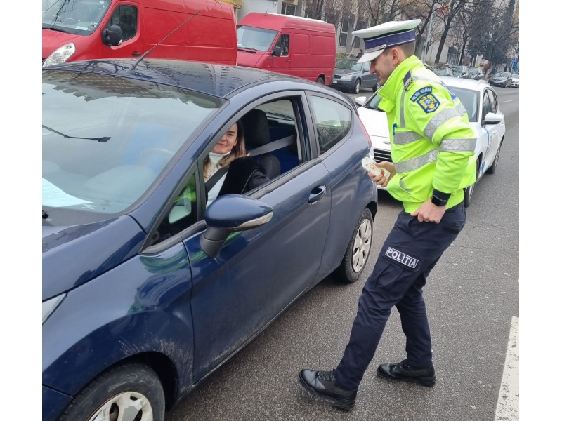 Astfel, șoferițele au fost oprite în trafic, însă nu pentru un control de rutină, ci pentru a li se oferi un mărțișor și pentru a le ura o ”Primăvară frumoasă, fără evenimente rutiere!”.