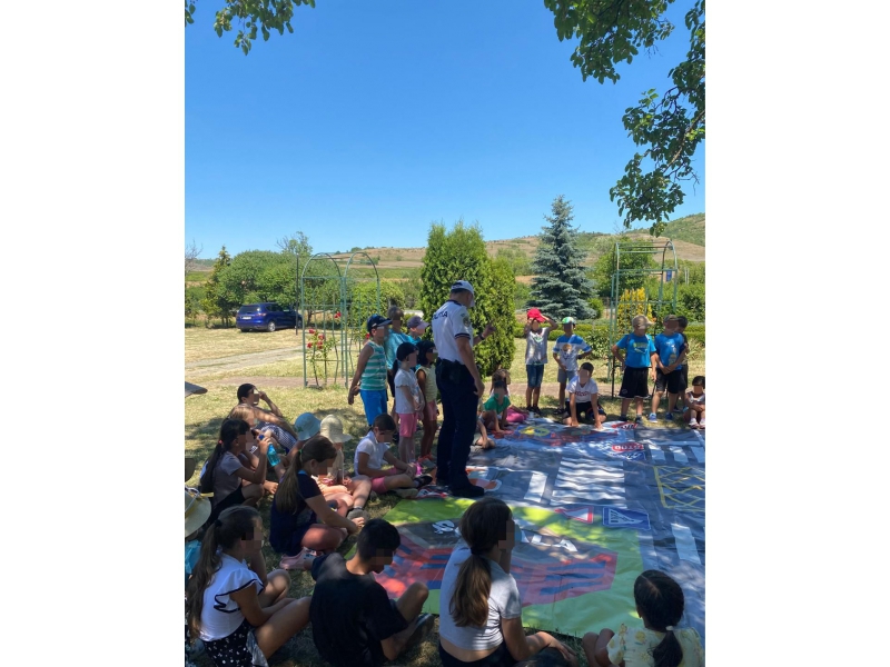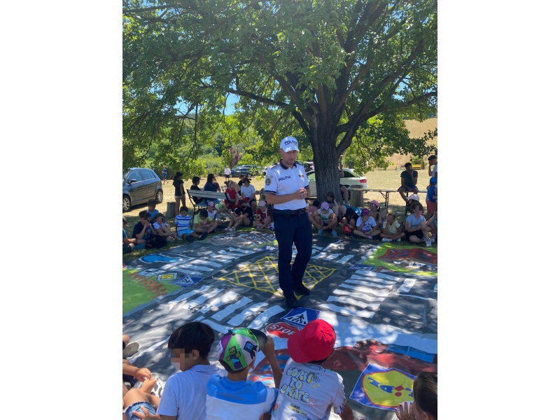 Într-un cadru relaxat, la umbra copacilor și pe un covor tematic cu marcaje rutiere, copiii au fost implicați într-o serie de activități educativ-preventive adaptate vârstei lor. Polițiștii le-au vorbit despre regulile de circulație, comportamentele sigure în trafic, dar și despre cum pot evita pericolele atunci când sunt pietoni, bicicliști sau pasageri.
