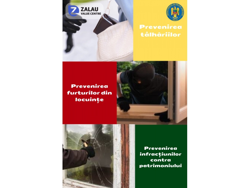 Joi, 23 mai a.c., în centrul comercial Zalău Value Center, începând cu ora 12.30, poliţiştii Biroului de Analiza şi Prevenire a Criminalităţii vor desfășura activități de informare şi conştientizare a populaţiei pe linia prevenirii infracțiunilor contra patrimoniului, scopul principal al acestora constând în informarea cetățenilor cu privire la modalitățile de prevenire a acestor gen de infracțiuni și măsurile de autoprotecţie ce pot fi adoptate în vederea reducerii riscului de victimizare.