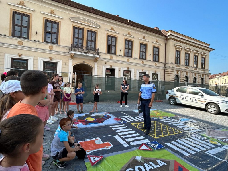 În cadrul activității desfășurate, polițiștii rutieri au pus la dispoziția celor mai mici participanți un covor rutier, care reproduce fidel situațiile ce pot fi întâlnite în trafic, fiind prevăzut cu treceri de pietoni, carosabil, intersecții cu sens giratoriu, piste pentru biciclete, acostament, cu ajutorul căruia, copiii prezenți au învățat, prin exemple practice oferite de polițiști, cum să circule corect și care este semnificația principalelor indicatoare rutiere.